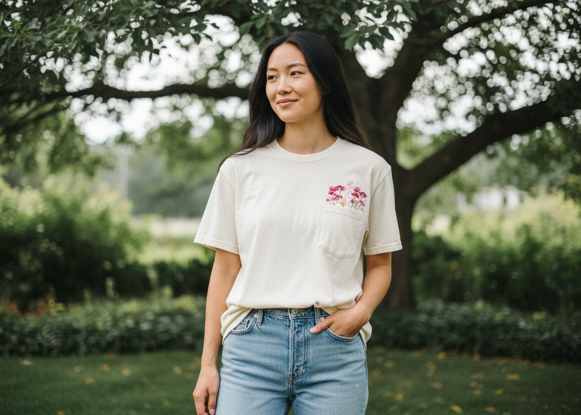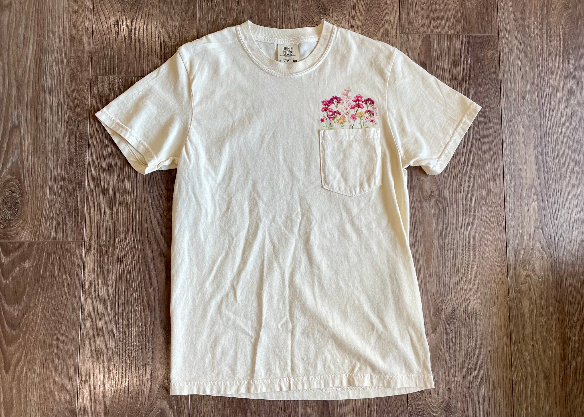 Floral Pocket Tee made with DTF Transfer on our Comfort Colours T-Shirt