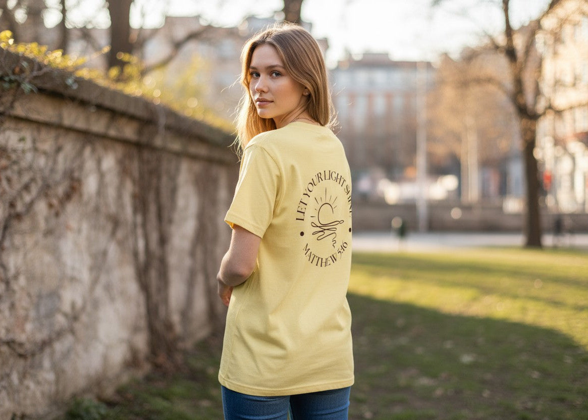 Let Your Light Shine Graphic Tee made with DTF Transfer on our Comfort Colours T-Shirt