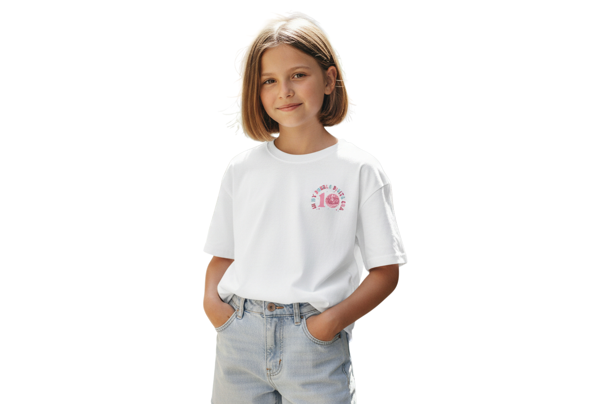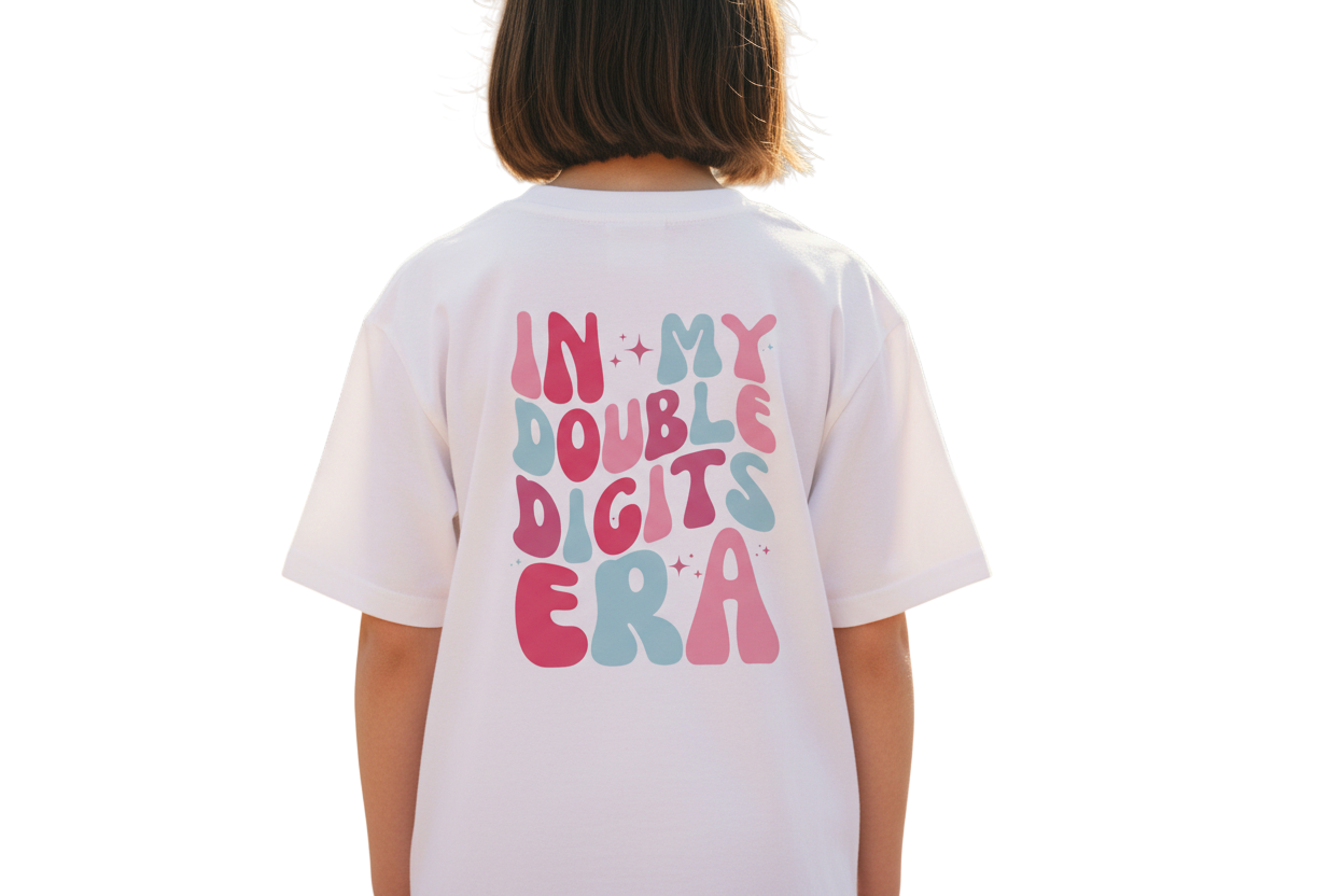 In My Double Digits Era Youth Size Graphic Tee made with DTF Transfer on our Comfort Colours T-Shirt