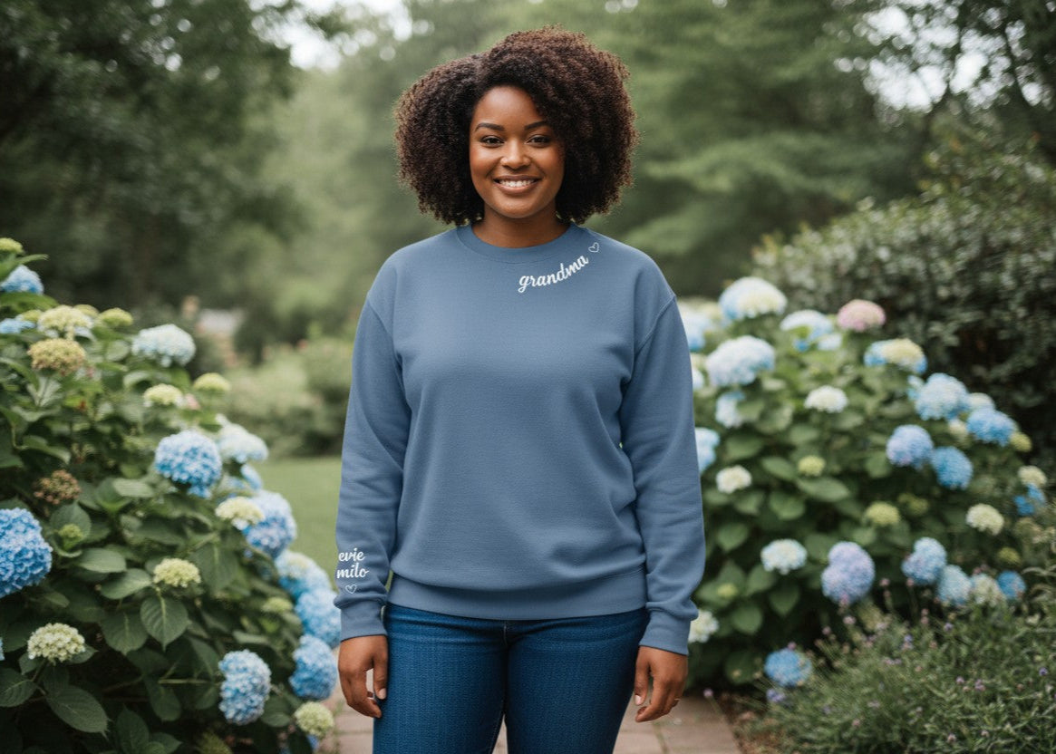 Customize this crewneck with your loved ones names on the sleeve. Write all names in the textbox and if there is a size or colour you are hoping for please also specify this in the textbox.