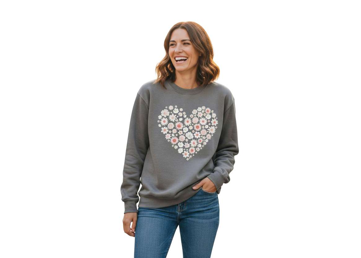 Floral Heart Sweater made with DTF Transfer on our Gildan Sweaters
