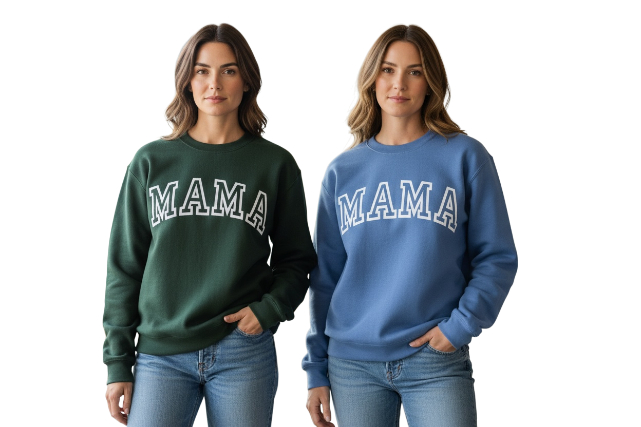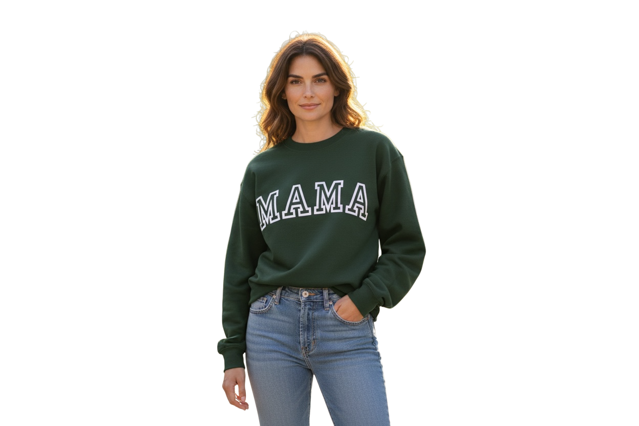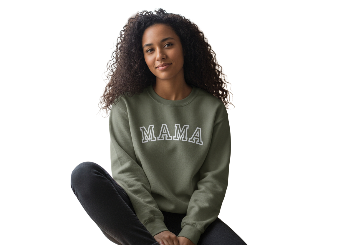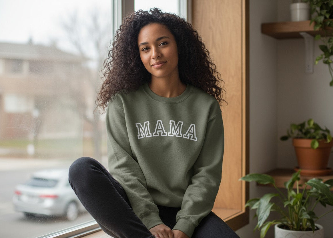 MAMA Sweater made with DTF Transfer on our Gildan Sweaters